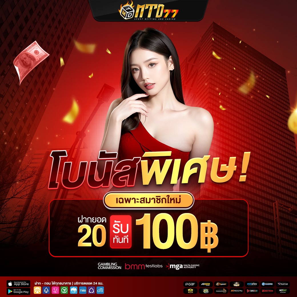 เริ่มต้นด้วยการฝากเงินขั้นต่ำเพียง 100 บาท คุณก็จะได้รับโบนัสทันที โดยไม่ต้องทำเทิร์นโอเวอร์ที่ยุ่งยาก ยิ่งฝากมากก็ยิ่งได้โบนัสเยอะ ซึ่งทาง MTD77 ได้ออกแบบโปรโมชั่นนี้มาเพื่อตอบโจทย์นักพนันทุกระดับ ไม่ว่าจะเล่นหนักหรือเล่นเบา ก็มีโอกาสทำกำไรได้มากขึ้น