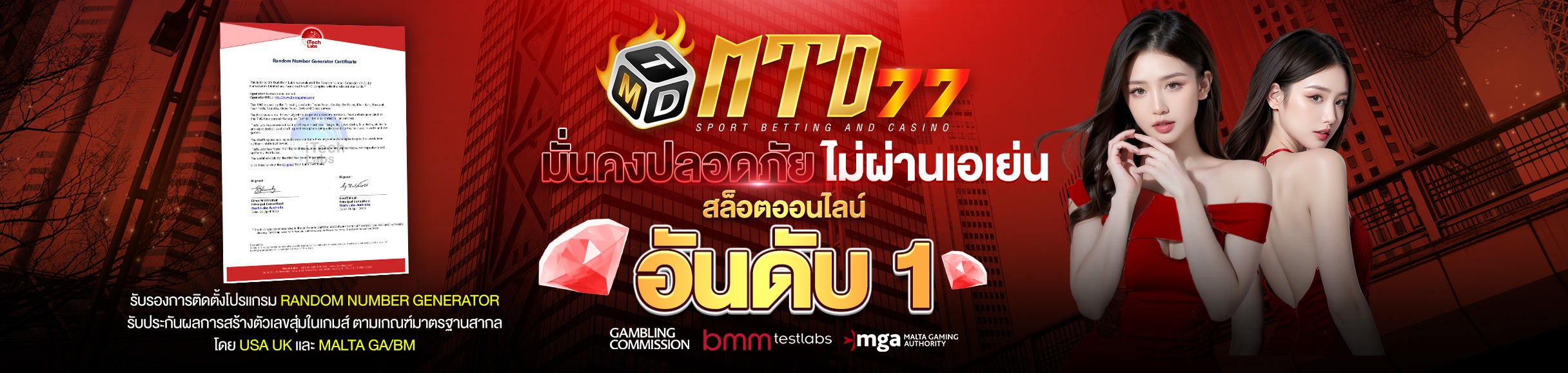 เว็บพนันออนไลน์ MTD77 ศูนย์รวมเกมพนันครบครัน ให้บริการตลอด 24 ชั่วโมง พร้อมระบบฝาก-ถอนอัตโนมัติที่รวดเร็วทันใจ มาพร้อมเกมส์ให้เลือกเล่นมากมาย ทั้งสล็อต บาคาร่า แทงบอล มวย และคาสิโนสด จากค่ายดังระดับโลก